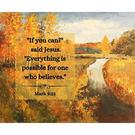 Bible Verse Quote Mark 9:23, Issac Levitan - Autumn Water Black Modern Wood Framed Art Print with Double Matting by ArtsyQuotes