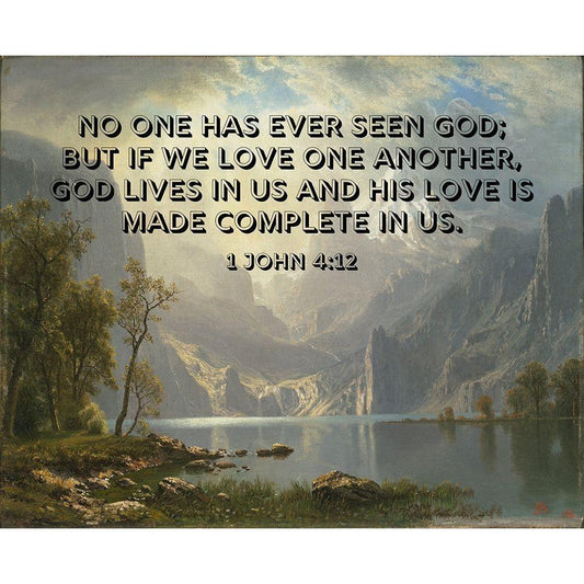 Bible Verse Quote 1 John 4:12, Albert Bierstadt - Lake Tahoe Black Modern Wood Framed Art Print with Double Matting by ArtsyQuotes