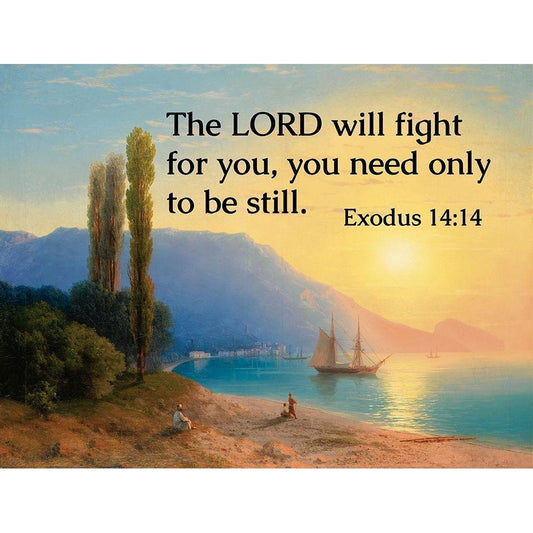 Bible Verse Quote Exodus 14:14, Ivan Aivazovsky - Sunset Over Yalta Black Modern Wood Framed Art Print with Double Matting by ArtsyQuotes