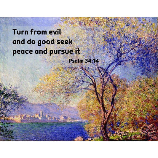 Bible Verse Quote Psalm 34:14, Claude Monet - Antibes Seen from the Salis Gardens Black Modern Wood Framed Art Print with Double Matting by ArtsyQuotes