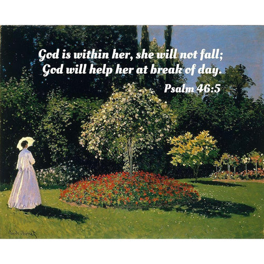 Bible Verse Quote Psalm 46:5, Claude Monet - Jeanne-Marguerite Lecadre in the Garden Black Modern Wood Framed Art Print with Double Matting by ArtsyQuotes