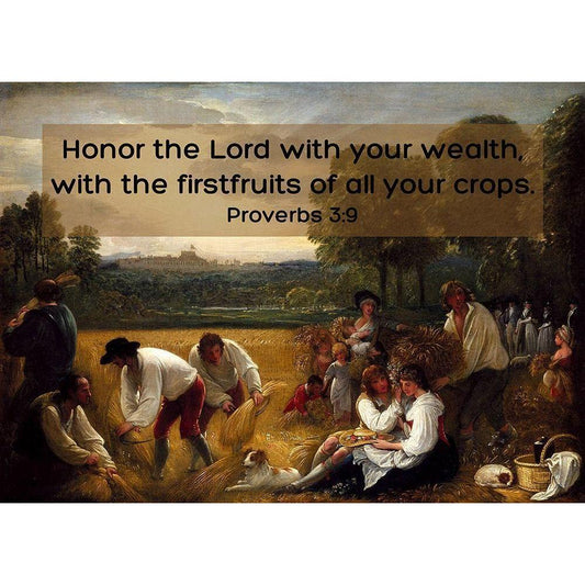 Bible Verse Quote Proverbs 3:9, Benjamin West - Harvesting at Windsor Black Modern Wood Framed Art Print with Double Matting by ArtsyQuotes
