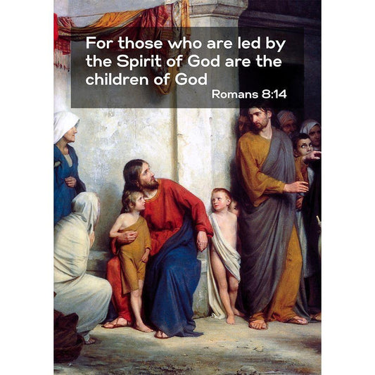 Bible Verse Quote Romans 8:14, Carl Bloch - Suffer the Children Black Modern Wood Framed Art Print with Double Matting by ArtsyQuotes
