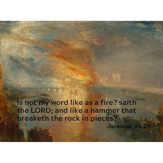 Bible Verse Quote Jeremiah 23:29, Joseph Mallord William Turner - Houses of Lords and Commons Black Modern Wood Framed Art Print with Double Matting by ArtsyQuotes