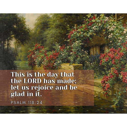 Bible Verse Quote Psalm 118:24, Louis Aston Knight, Rambling Roses on a Rivers Edge Black Modern Wood Framed Art Print with Double Matting by ArtsyQuotes