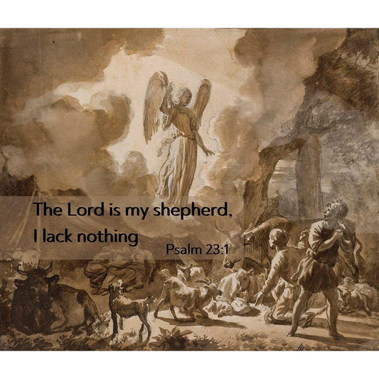 Bible Verse Quote Psalm 23:1, Adriaen van de Velde, The Angel Appearing to the Shepherds Black Modern Wood Framed Art Print with Double Matting by ArtsyQuotes