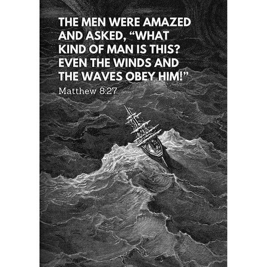 Bible Verse Quote Matthew 8:27, Gustave Dore - Grim Sea Scene Black Modern Wood Framed Art Print with Double Matting by ArtsyQuotes