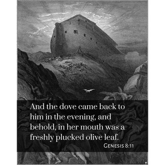 Bible Verse Quote Genesis 8:11, Gustave Dore - The Dove sent forth from the Ark Black Modern Wood Framed Art Print with Double Matting by ArtsyQuotes