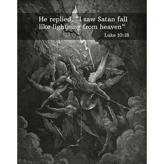 Bible Verse Quote Luke 10:18, Gustave Dore - The Mouth of Hell Black Modern Wood Framed Art Print with Double Matting by ArtsyQuotes
