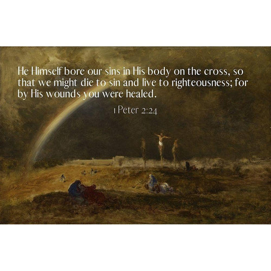 Bible Verse Quote 1 Peter 2:24, George Inness - The Triumph at Calvary Black Modern Wood Framed Art Print with Double Matting by ArtsyQuotes