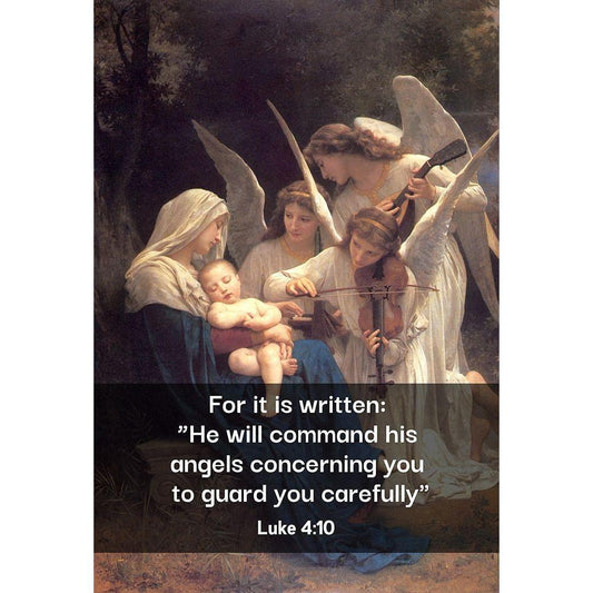 Bible Verse Quote Luke 4:10, William Adolphe Bouguereau - Song of the Angels Black Modern Wood Framed Art Print with Double Matting by ArtsyQuotes