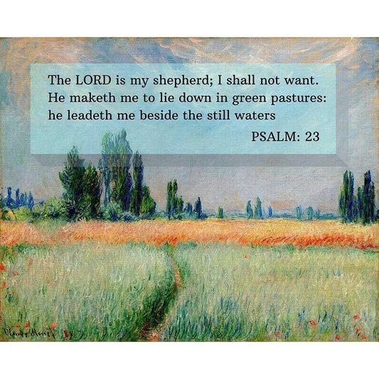 Bible Verse Quote Psalm 23, Claude Monet, The Wheat Field Black Modern Wood Framed Art Print with Double Matting by ArtsyQuotes