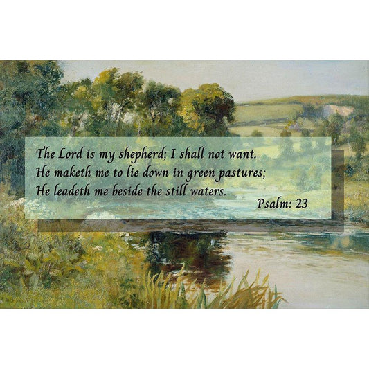 Bible Verse Quote Psalm 23, Edward Mitchell Bannister, Streamside Black Modern Wood Framed Art Print with Double Matting by ArtsyQuotes