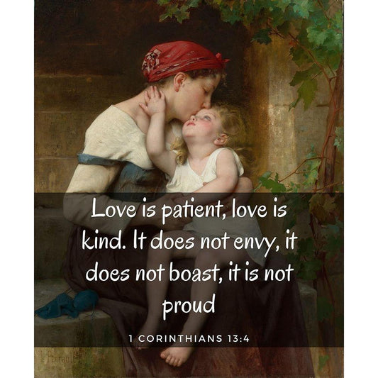 Bible Verse Quote 1 Corinthians 13:4, Leon Brazile Perrault, Mother with Child Black Modern Wood Framed Art Print with Double Matting by ArtsyQuotes