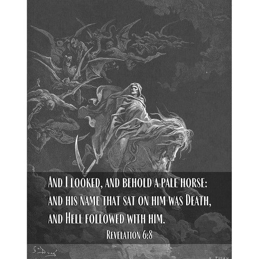 Bible Verse Quote Revelation 6:8, Gustave Dore - Death on a Pale Horse Black Modern Wood Framed Art Print with Double Matting by ArtsyQuotes