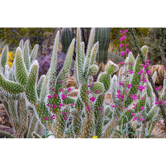 Wooly Jacket Prickly Pear Cactus and Penstemon at the Arizona Sonoran Desert Museum in Tucson-Arizo Black Modern Wood Framed Art Print with Double Matting by Haney, Chuck