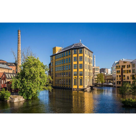 Sweden-Norrkoping-early Swedish industrial town-Arbetets Museum-Museum of Work in former early 20th Black Modern Wood Framed Art Print with Double Matting by Bibikow, Walter
