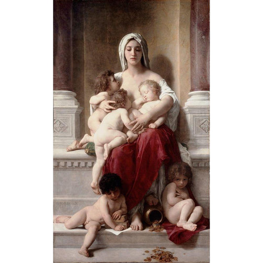 Charity Black Modern Wood Framed Art Print with Double Matting by Bouguereau, William-Adolphe