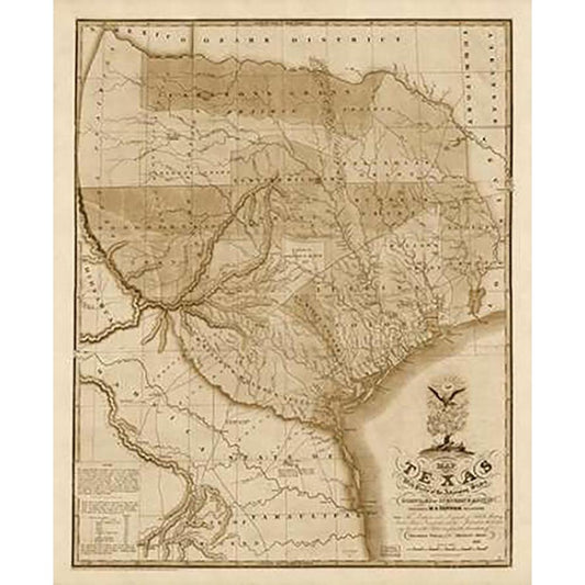 Map of Texas with parts of the adjoining states, 1837 - Decorative Sepia Black Modern Wood Framed Art Print with Double Matting by Tanner, Henry Schenck