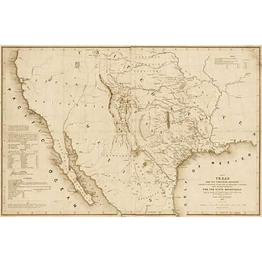 Map of Texas and the countries adjacent, 1844 - Decorative Sepia Black Modern Wood Framed Art Print with Double Matting by H. Emory, William H., Emory, William