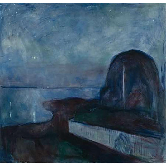 Starry Night, 1983 Black Modern Wood Framed Art Print with Double Matting by Munch, Edvard