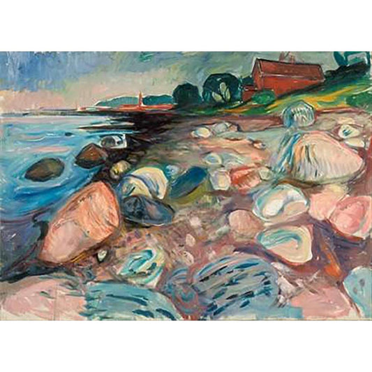 Shore with Red House, 1904 Black Modern Wood Framed Art Print with Double Matting by Munch, Edvard
