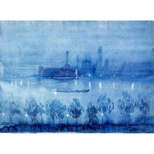 Blue Night, London Black Modern Wood Framed Art Print with Double Matting by Pennell, Joseph