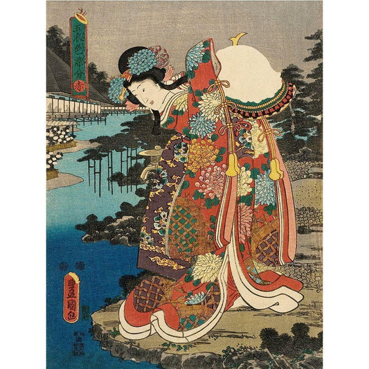 Costumes in Five Different Colors - Red (Aka) Black Modern Wood Framed Art Print with Double Matting by Kunisada (Toyokuni III), Utagawa