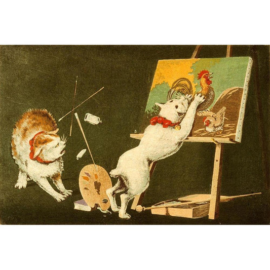 Canvas and Cats Black Modern Wood Framed Art Print with Double Matting by Kiyochika, Kobayashi