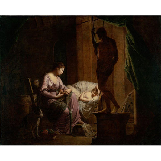 Penelope Unraveling Her Web Black Modern Wood Framed Art Print with Double Matting by Wright, Joseph