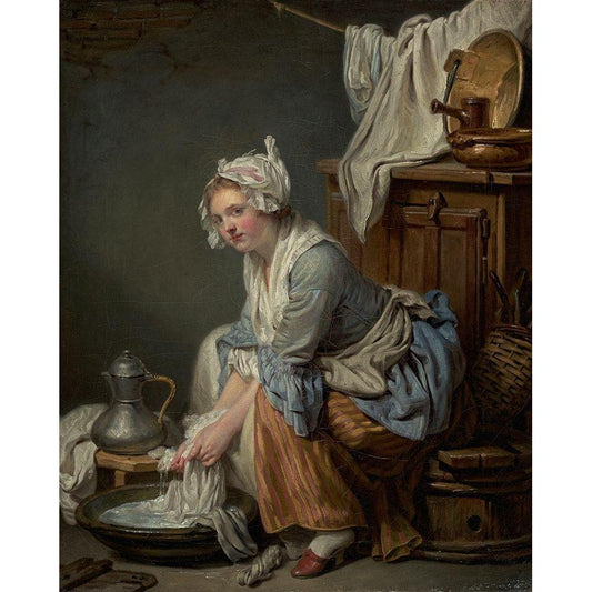 The Laundress (La Blanchisseuse) Black Modern Wood Framed Art Print with Double Matting by Greuze, Jean-Baptiste