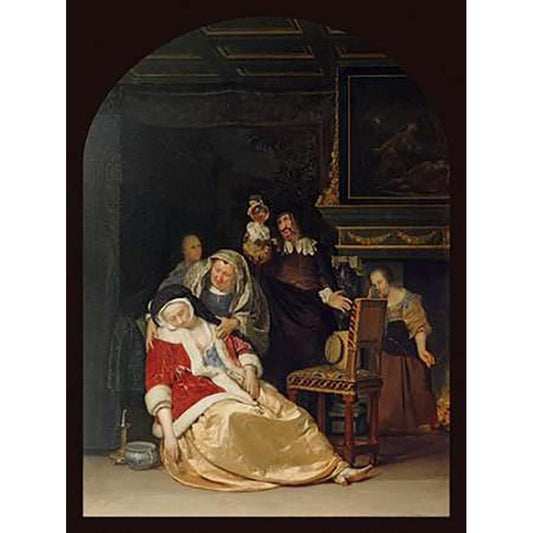 The Doctors Visit Black Modern Wood Framed Art Print with Double Matting by Van Mieris, Frans
