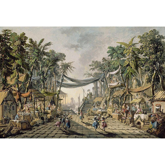 Market Scene in an Imaginary Oriental Port Black Modern Wood Framed Art Print with Double Matting by Pillement, Jean-Baptiste