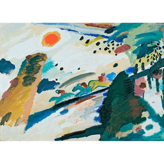 Romantic Landscape, 1911 Black Modern Wood Framed Art Print with Double Matting by Kandinsky, Wassily