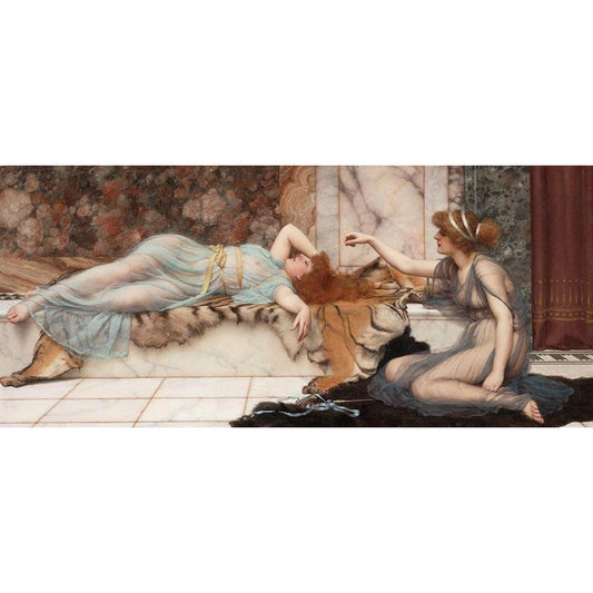 Mischief and Repose Black Modern Wood Framed Art Print with Double Matting by Godward, John William