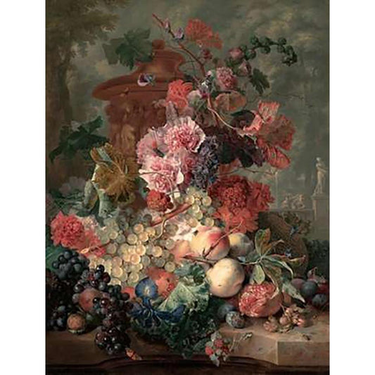 Fruit Piece Black Modern Wood Framed Art Print with Double Matting by Van Huysum, Jan