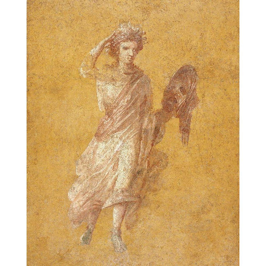 Fragment of a Yellow Fresco Panel with Muse Black Modern Wood Framed Art Print with Double Matting by Artisan, Unknown 1st Century Roman
