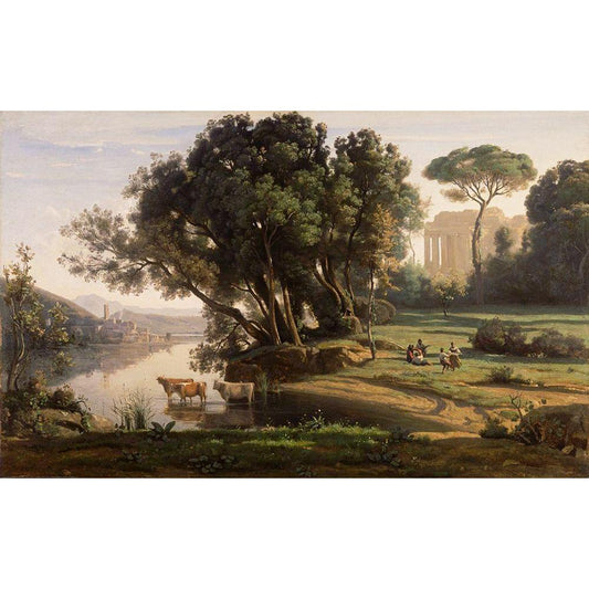 Italian Landscape (Soleil Levant) Black Modern Wood Framed Art Print with Double Matting by Corot, Jean-Baptiste-Camille