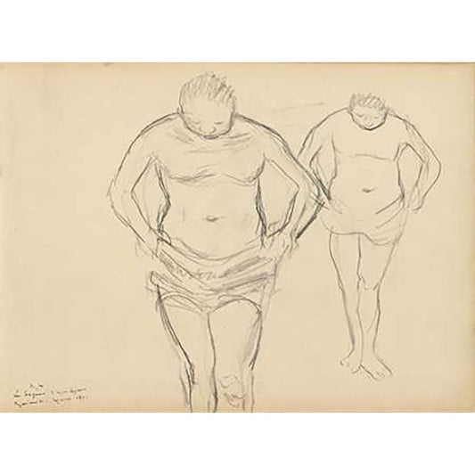 Copies of Cezannes Bathers Black Modern Wood Framed Art Print with Double Matting by Degas, Edgar