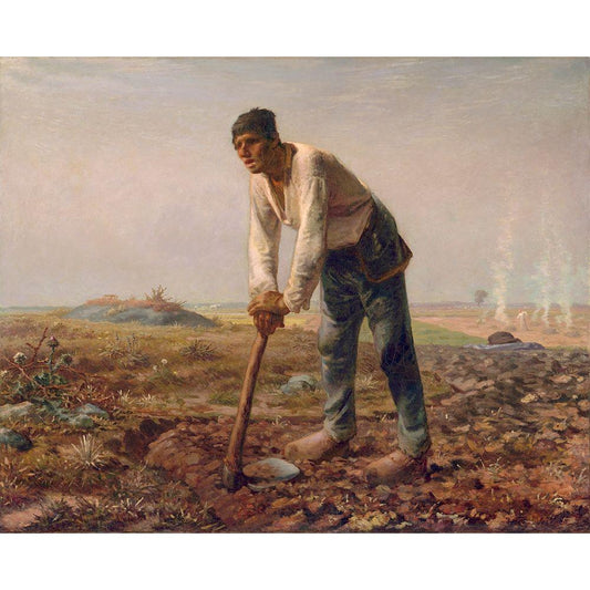 Man with a Hoe Black Modern Wood Framed Art Print with Double Matting by Millet, Jean-Francois