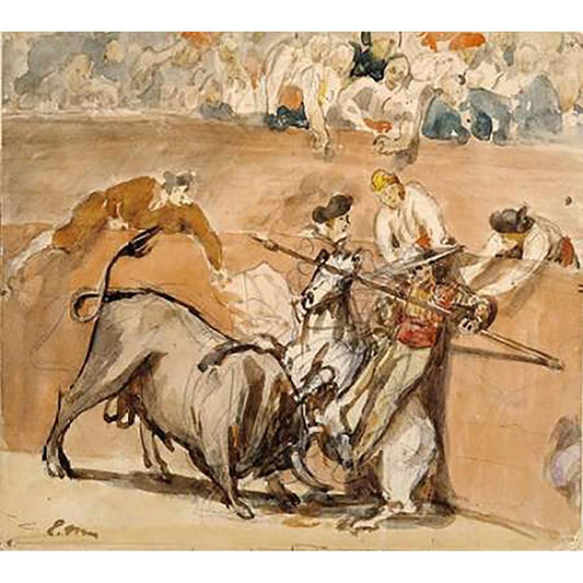 Bullfight Black Modern Wood Framed Art Print with Double Matting by Manet, Edouard
