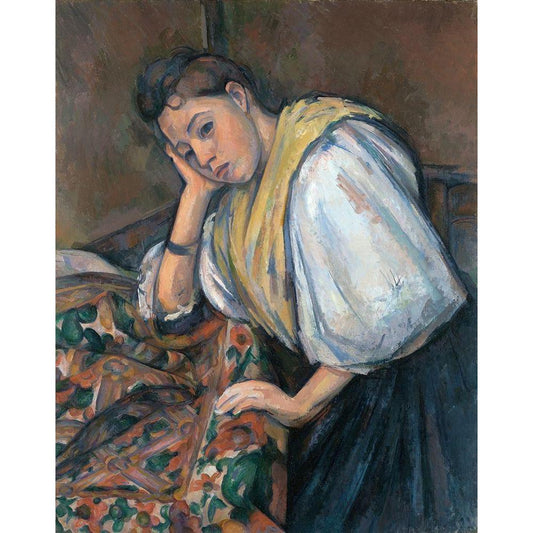Young Italian Woman at a Table Black Modern Wood Framed Art Print with Double Matting by Cezanne, Paul