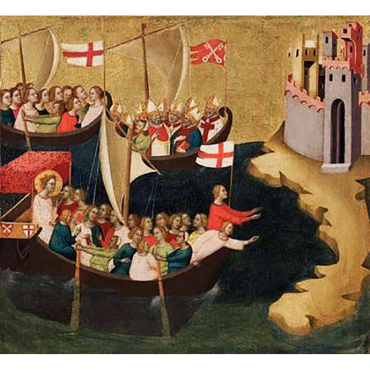 Arrival of Saint Ursula at Cologne Black Modern Wood Framed Art Print with Double Matting by Daddi, Bernardo