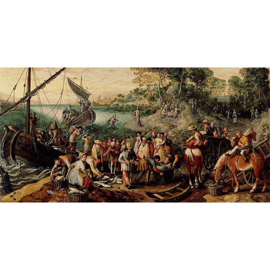 The Miraculous Draught of Fishes Black Modern Wood Framed Art Print with Double Matting by Beuckelaer, Joachim