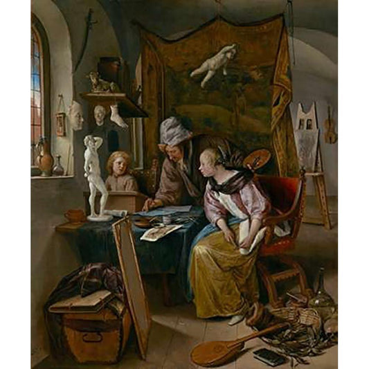 The Drawing Lesson Black Modern Wood Framed Art Print with Double Matting by Steen, Jan