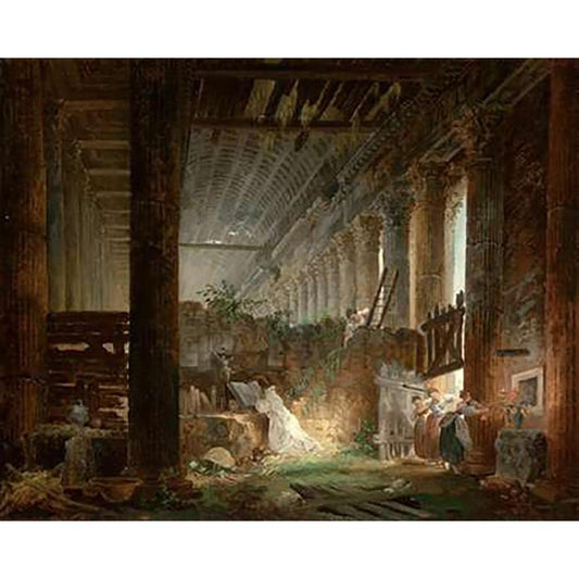 A Hermit Praying in the Ruins of a Roman Temple Black Modern Wood Framed Art Print with Double Matting by Robert, Hubert