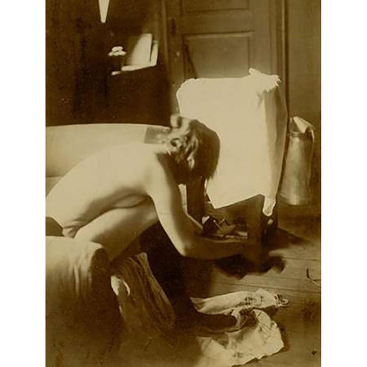 After the Bath Black Modern Wood Framed Art Print with Double Matting by Degas, Edgar