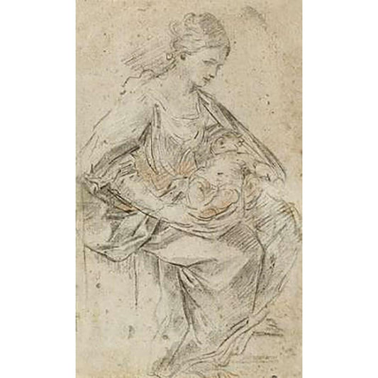 The Holy Family Black Modern Wood Framed Art Print with Double Matting by Romano, Giulio