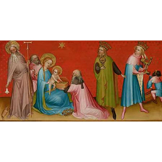 The Adoration of the Magi with Saint Anthony Abbot Black Modern Wood Framed Art Print with Double Matting by Franco-Flemish Master