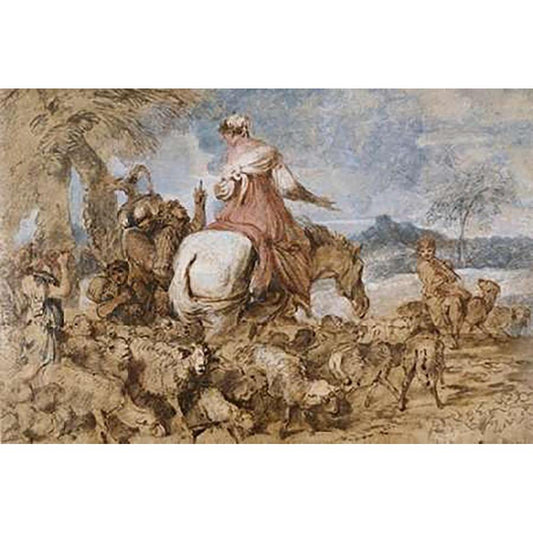 Pastoral Journey Black Modern Wood Framed Art Print with Double Matting by Castiglione, Giovanni Benedetto